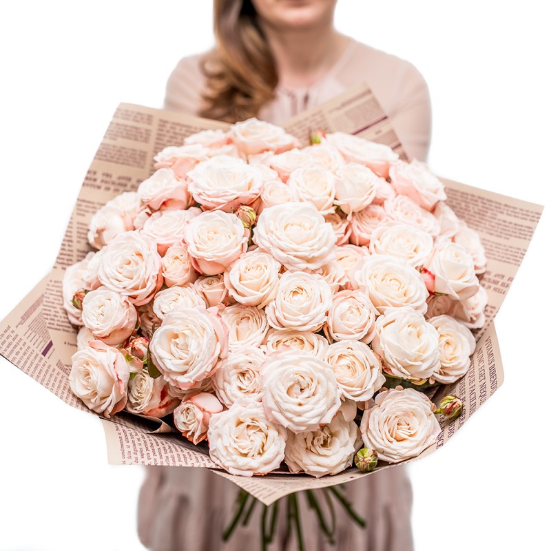 Bukiet "Bombastic" to bukiet ułożony z różyczki gałązkowej odmiany Bombastic otulonych ozdobnych papierem. Bukiet na zdjęciu przedstawia wersję DeLuxe. Zamówienie prosimy składać z minimum jednodniowym wyprzedzeniem lub tego samego dnia po wcześniejszej konsultacji telefonicznej.