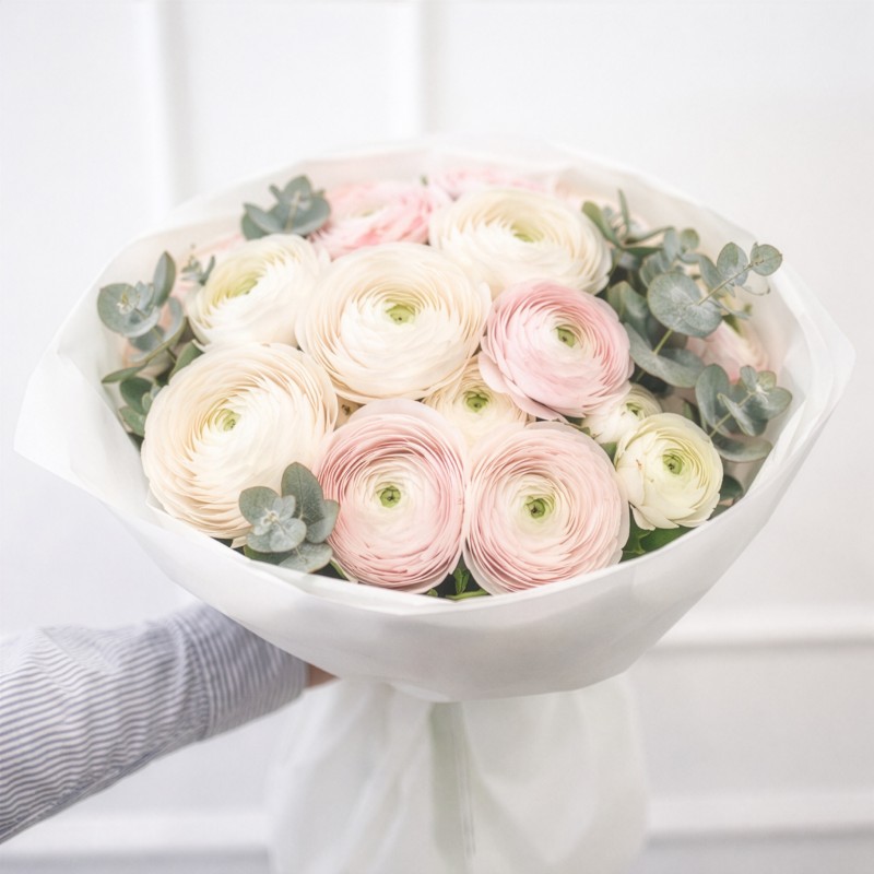 Bukiet "Jaskry" to subtelny, kobiecy bukiet ułożony z jaskrów oraz gałązek eukaliptusa. Całość otulona papierem. Zamówienia prosimy składać po wcześniejszej konsultacji telefonicznej lub mailowej.